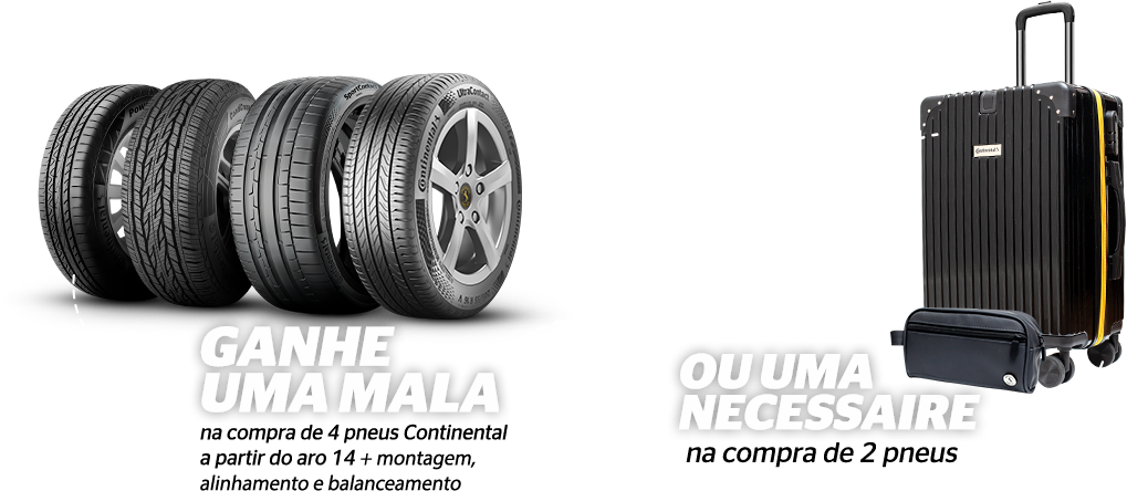 *Mala Exclusiva: Na compra de 4 pneus a partir do aro 14 + montagem, alinhamento e balanceamento.
